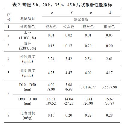 2.2不同球磨時間對片狀銀粉的影響